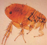 跳蚤有厚的外殼,是有三對腳,體型較細,像芝麻一般,以吸食動物和人類的血為生,如果人類被蚤叮咬會紅腫和搔癢,嚴重可傳播皮膚病。